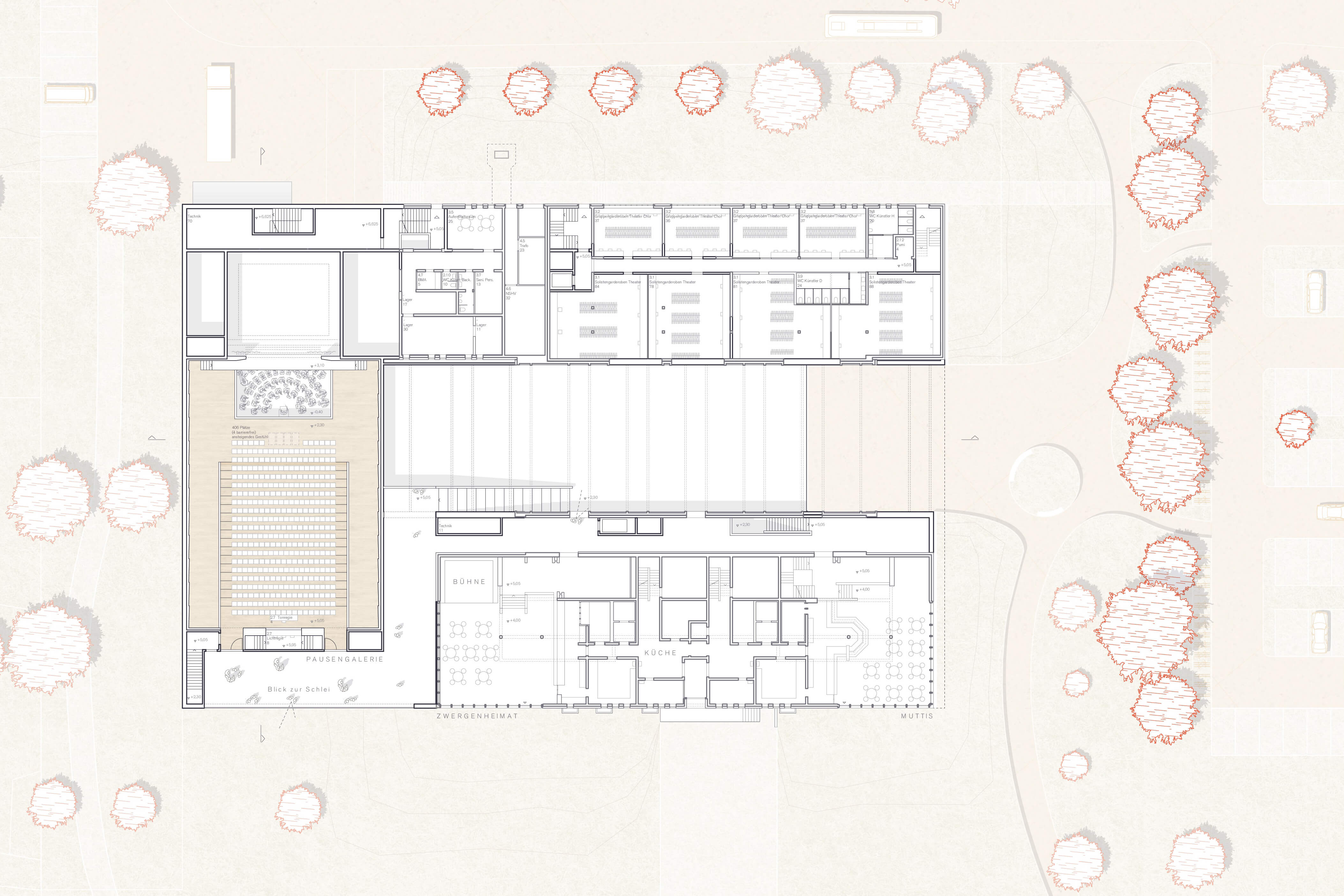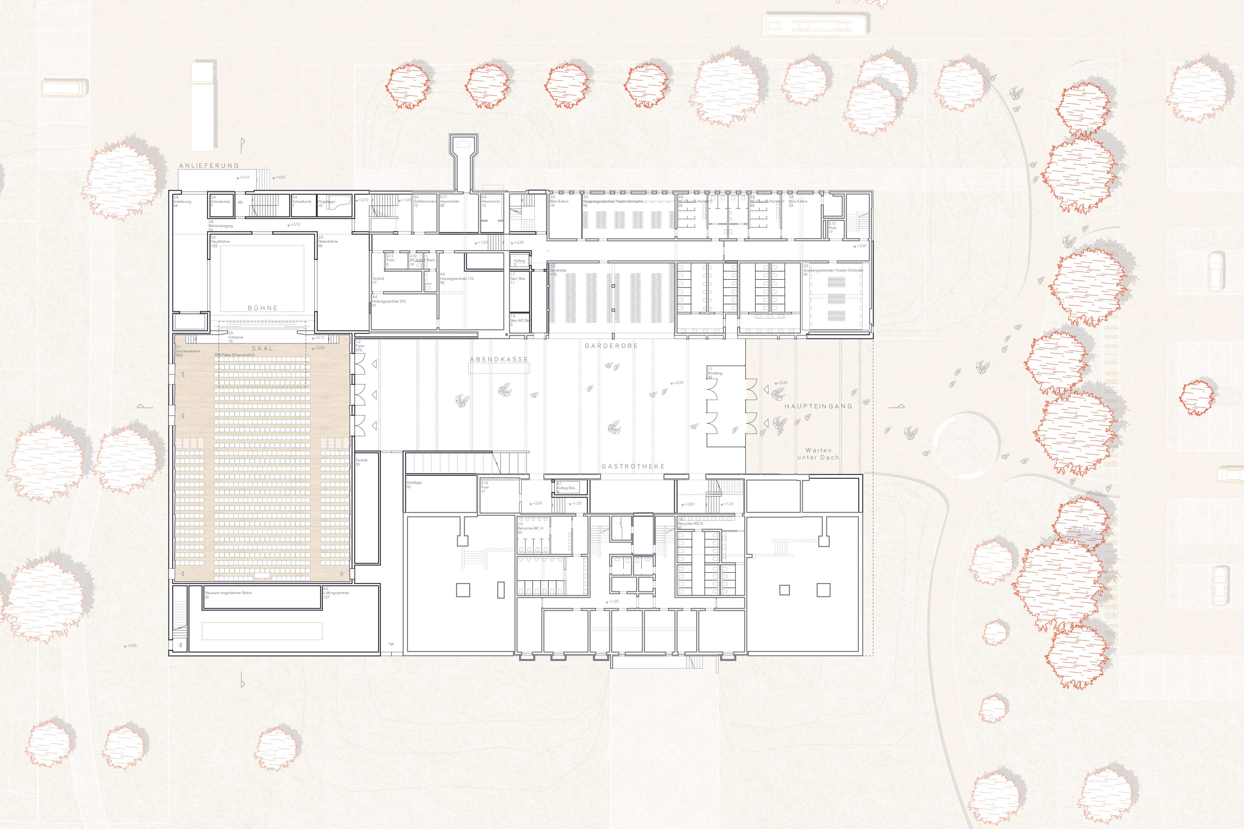 Das Kulturhaus auf der Freiheit zeigt sich als schlichter holzverkleideter Bau, der sich mit Bescheidenheit und Selbstverständlichkeit in die grüne Uferlandschaft an der Schlei einfügt. Es greift die zurückhaltende Materialität einfacher Zweckbauten auf und interpretiert diese für seine Zwecke neu. Die Kubatur knüpft einerseits an die gestaffelte Dachlandschaft des Bestandsbaus an und schafft andererseits durch das Hochklappen des südlichen Dachrandes einen reizvollen Sichtbezug zum Wasser.