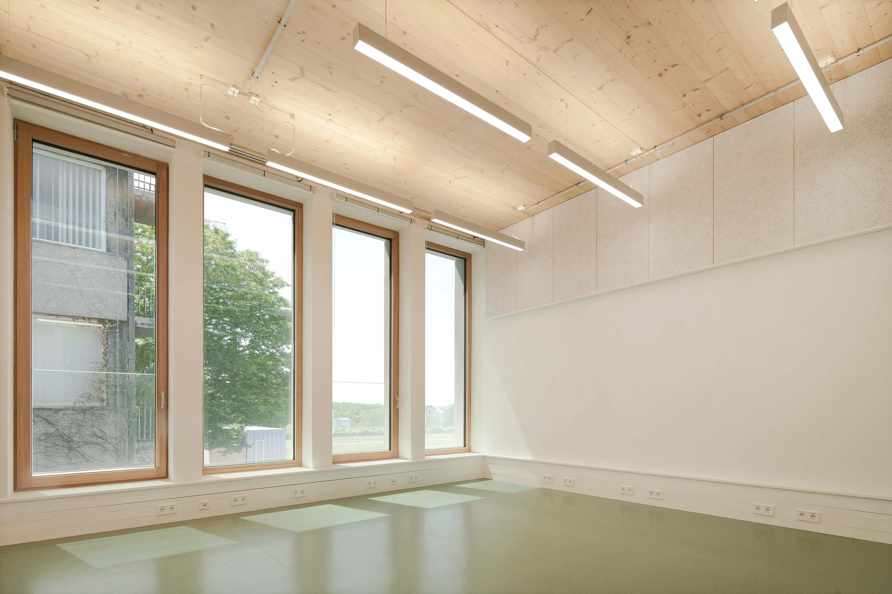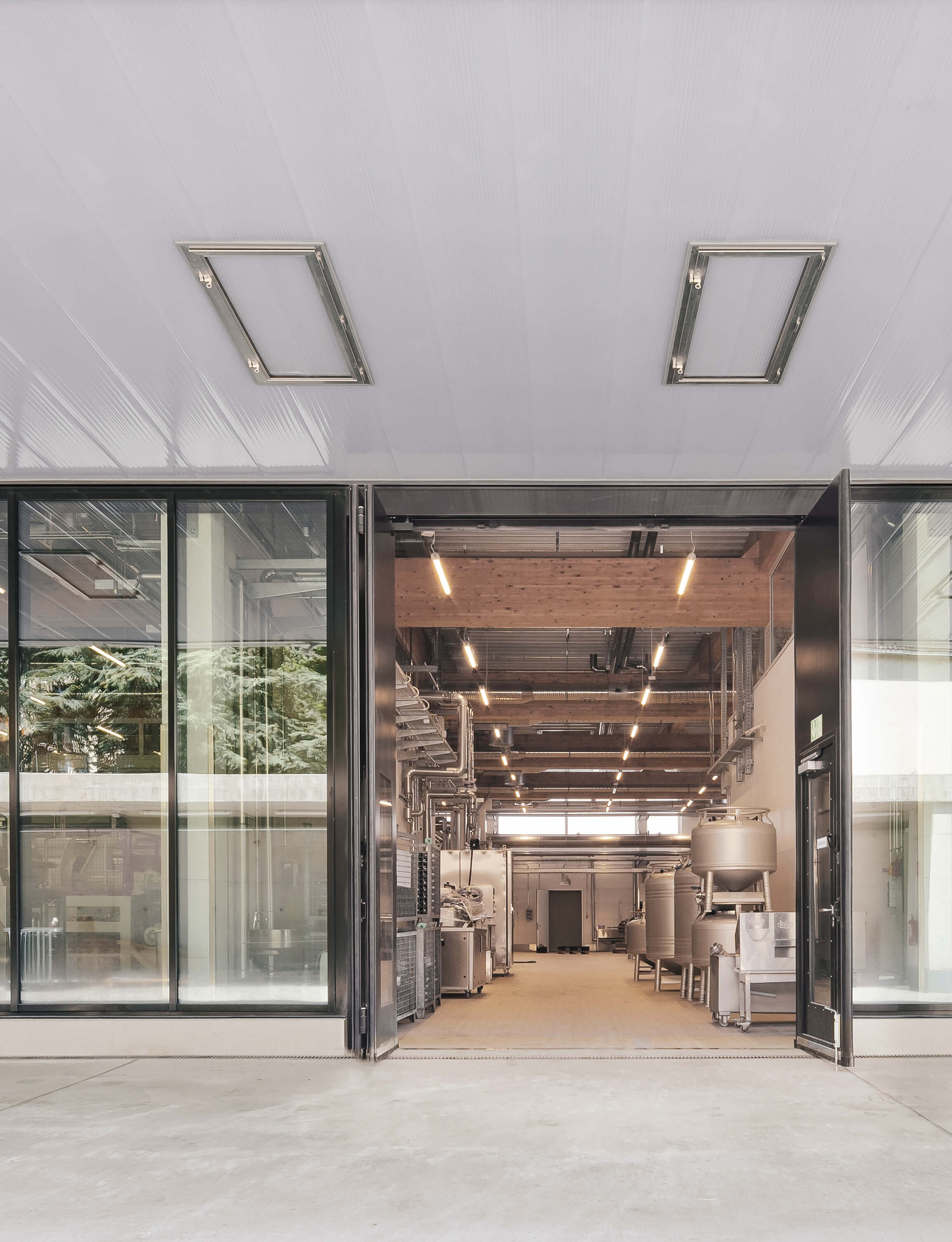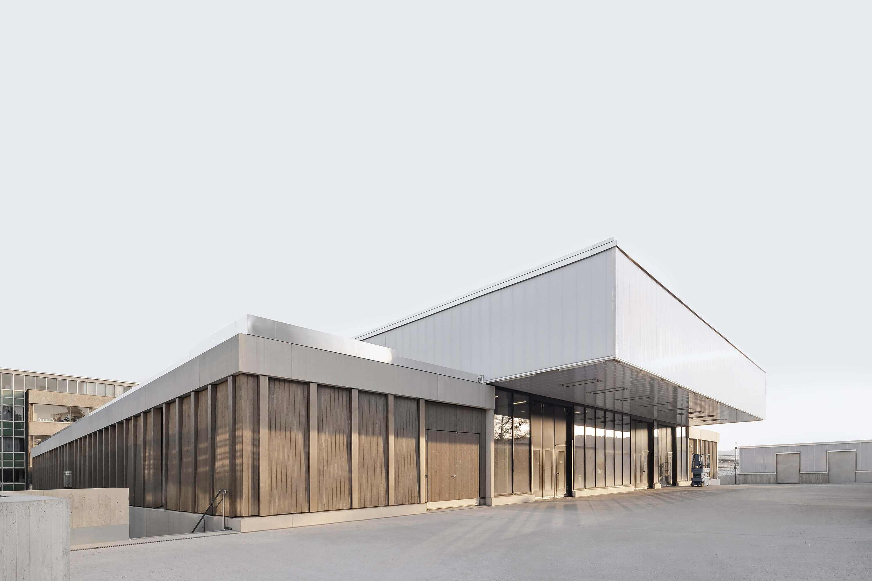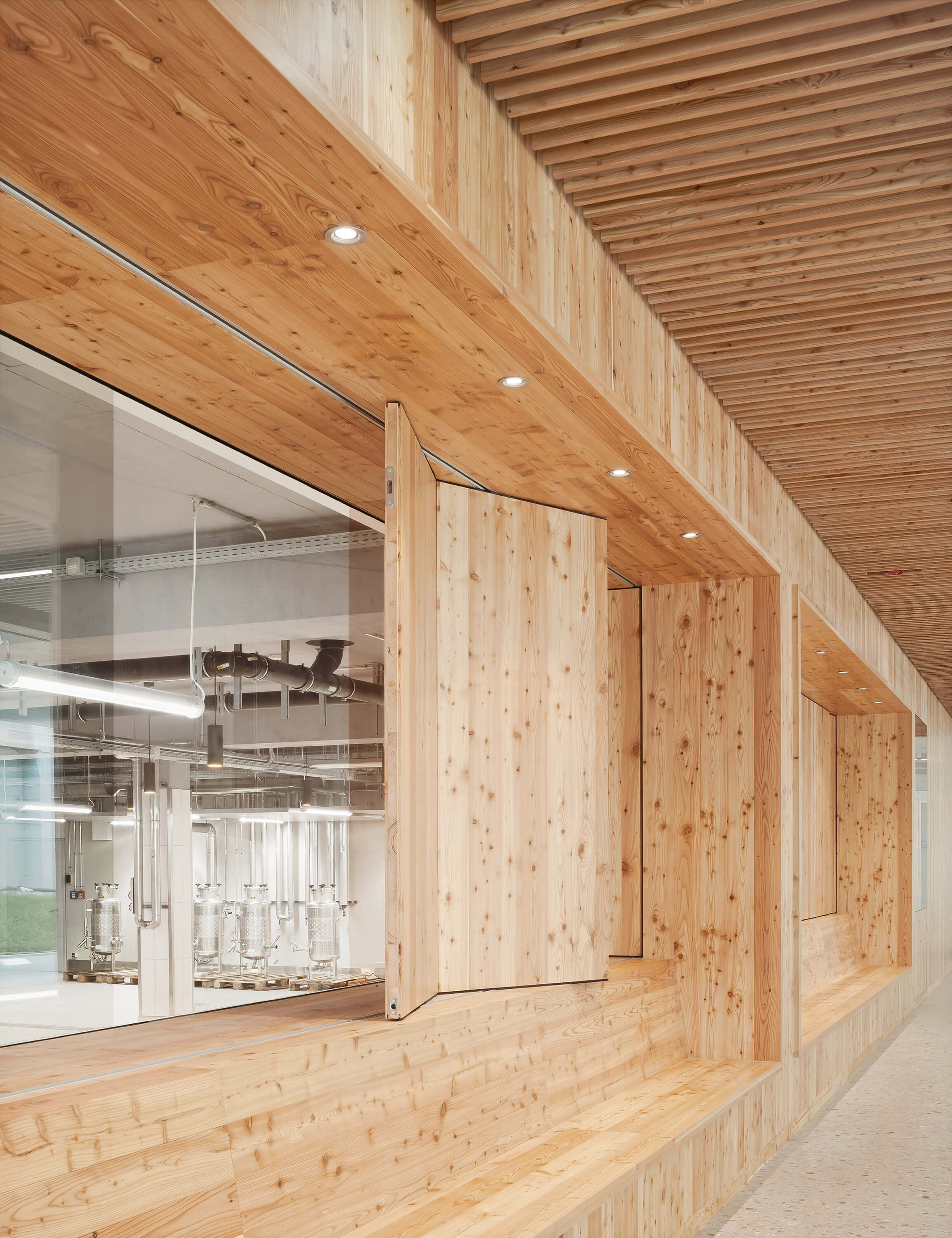 Das Getränketechnologische Zentrum ist der wichtigste Baustein für die praktische Ausbildung künftiger Getränketechnologen an der Hochschule in Geisenheim. Das janusköpfige Gebäude nutzt die vorhandene, deutlich abfallende Topographie. Während das tiefer gelegene, nach Süden hin zurückspringende Sockelgeschoss eine einladende Geste zum künftigen Campusplatz formuliert, erfolgt auf der höher gelegenen Nordseite die Anlieferung der mittig angeordneten Produktionshalle. Um die zentrale Halle legen sich zu drei Seiten mantelförmig umlaufend Labore, Werkstätten und die Verwaltung. Im zentralen Technikum wird der gesamte hochautomatisierte Produktionsprozess der Getränke vom frisch angelieferten Obst, über die Gewinnung von Säften, das Brennen von Schnaps bis hin zur Abfüllung der Getränke in Flaschen und Dosen in der Praxis vermittelt. Das hölzerne Tragwerk ist außen mit Polycarbonatplatten verkleidet und wird so zur Laterne, durch die gefiltertes Tageslicht in die Halle einfallen kann. Im Sockelgeschoss ist eine Schausektkellerei untergebracht, in die Einblicke vom vorgelagerten Verköstigungsbereich aus möglich sind. Ein Sensoriklabor, eine Kaffeerösterei sowie mehrere Werkstätten komplettieren das Raumprogramm dieses in Deutschland einzigartigen Lehrgebäudes. Die Werkstoffe Holz und Beton ergänzen sich hinsichtlich ihrer Stärken und Schwächen in Bezug auf Tragfähigkeit, Robustheit und Nachhaltigkeit und verleihen dem Gebäude eine zeitgenössische und identitätsstiftende Rustikalität.