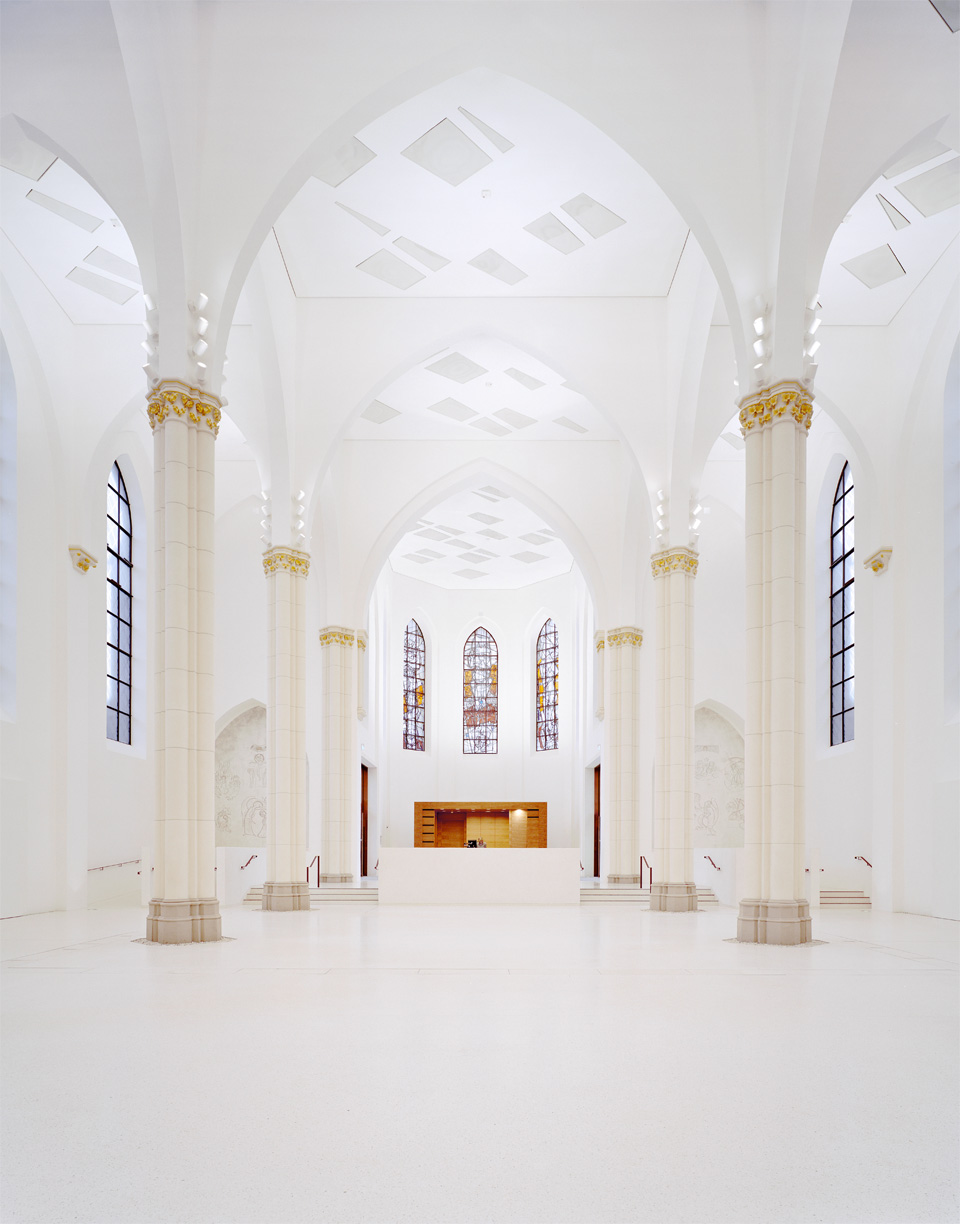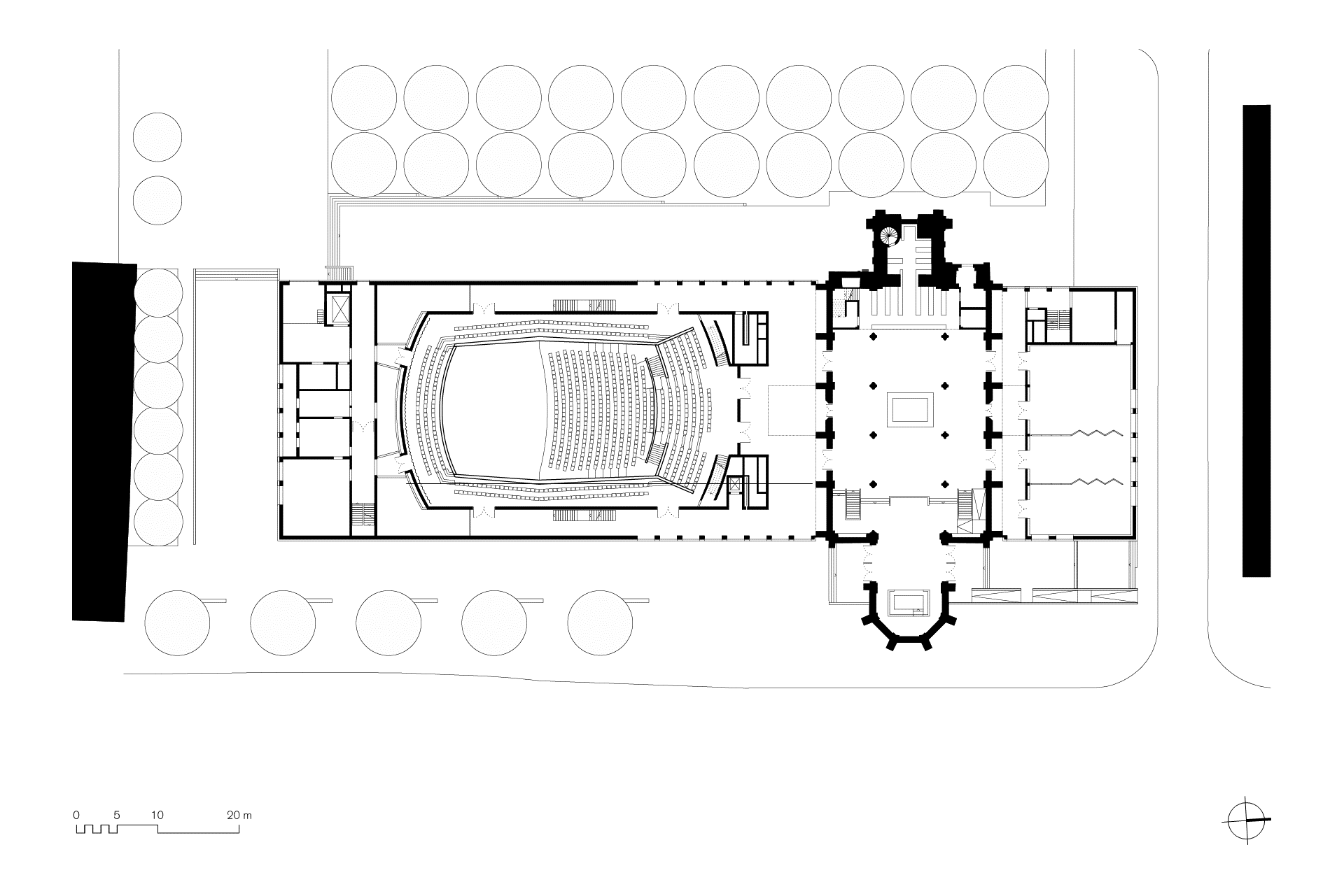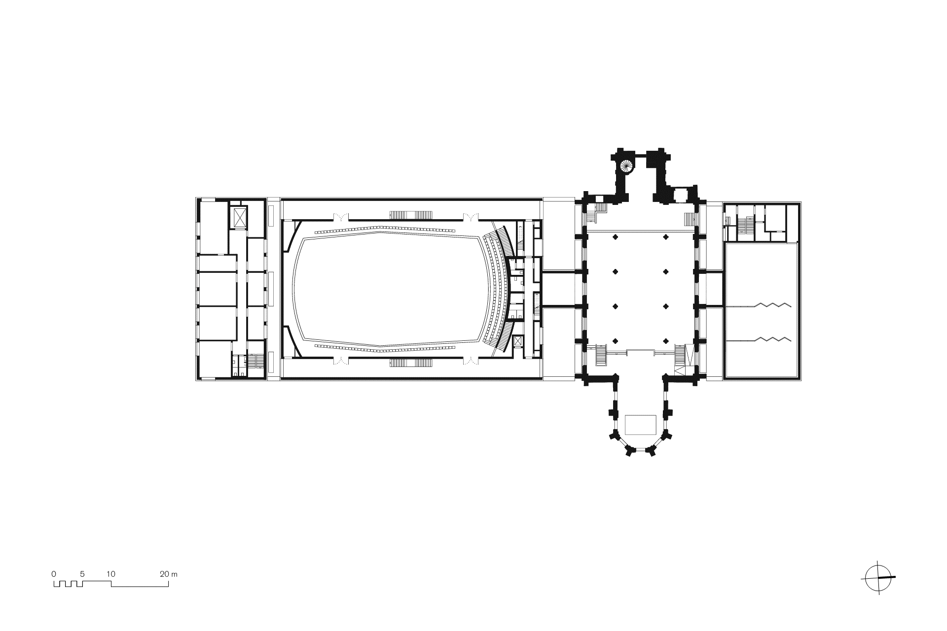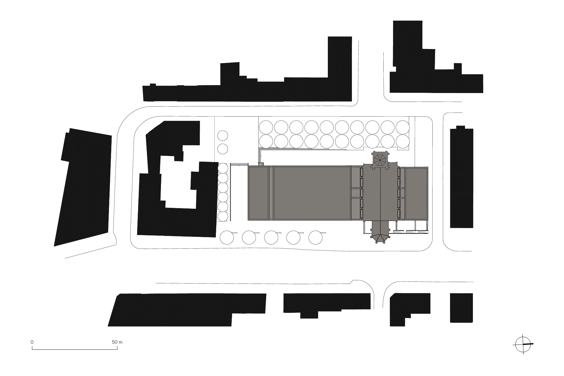 Der Neubau des Musikforums Bochum stellt einen wichtigen öffentlichen Baustein bei der Entwicklung des innerstädtischen Kreativquartiers Viktoriastraße in Bochum dar. Die profanierte, historische Marienkirche ist als zentrales Foyer des Hauses Identität stiftender, städtebaulicher und funktionaler Mittelpunkt des Musikforums. Zu beiden Seiten der Kirche wurden Baukörper angeordnet, die sich unmittelbar an der Länge des Kirchenschiffs orientieren und sich innenräumlich mit diesem verzahnen. Die Höhenentwicklung entlang der Viktoriastraße staffelt sich in Abhängigkeit der innenräumlichen Anforderungen und verleiht dem Gebäude so eine angemessene Maßstäblichkeit im Stadtraum. Auf der Südseite der 1872 errichteten Kirche befindet sich der Konzertsaal der Bochumer Symphoniker mit etwa 1000 Sitzplätzen und hochwertiger akustischer Ausstattung, auf ihrer Nordseite ein flexibel bespielbarer Multifunktionssaal für die Musikschule.