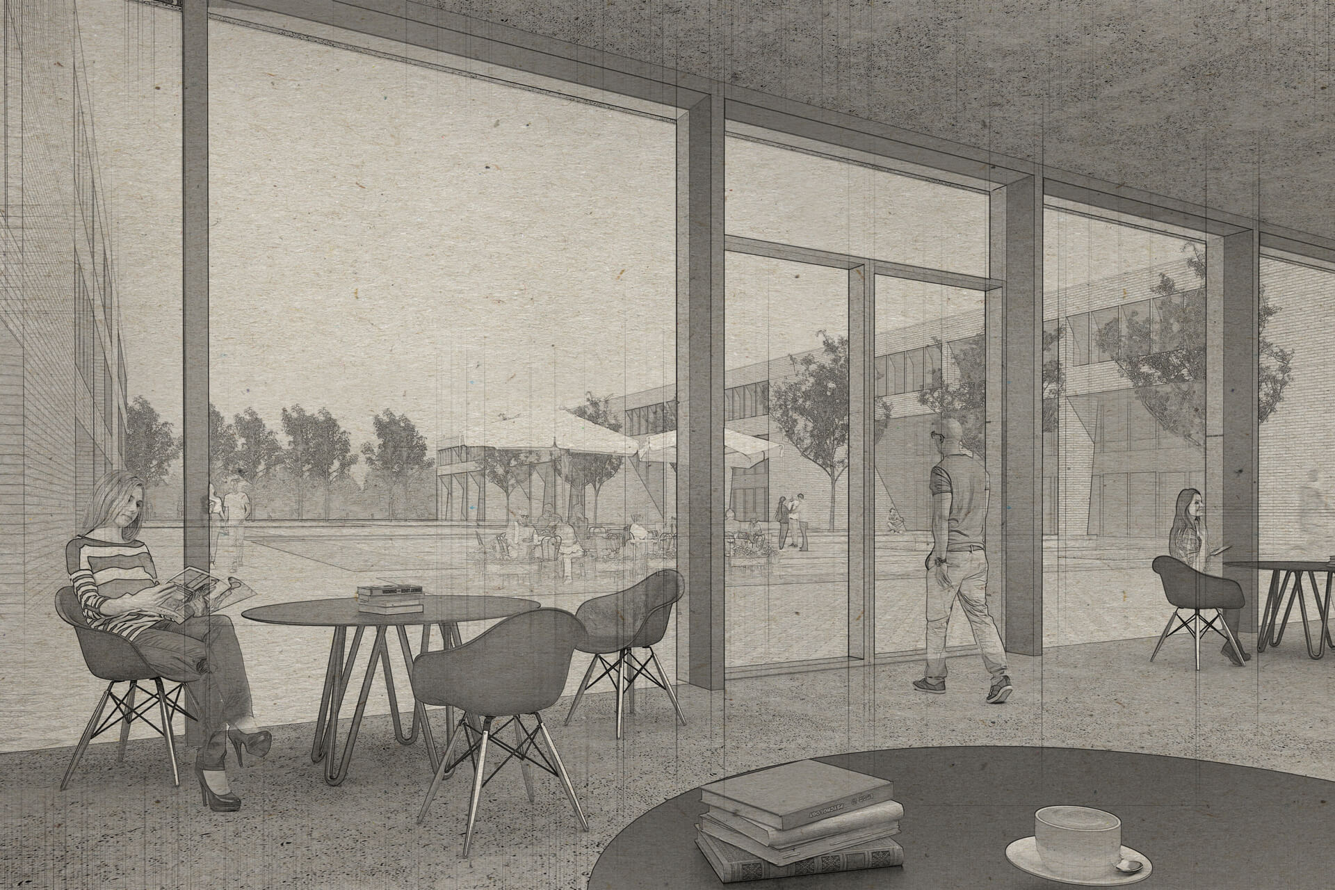 Three structures of different sizes, offset against each other, structure the extensive building area of the Trave Campus. They can be read separately, yet are structurally linked together to provide an indoor climate connection. The various functional areas are assigned to these three parts, thus simplifying orientation on the extensive campus. The middle building is dedicated to arrival and orientation, the east building is used for teaching, while the west building houses living, dining and leisure. The internal structure of the three building elements, as well as the low eaves height throughout, ensure a pleasant scale in the surrounding neighborhood. The central building is the functional and structural link between the workshops and seminar rooms in the east building and the living / dining / leisure area in the west building. This smallest of the three components on the south side of the building jumps in front of the building line, creating a clearly recognizable address on Wasserfahr.