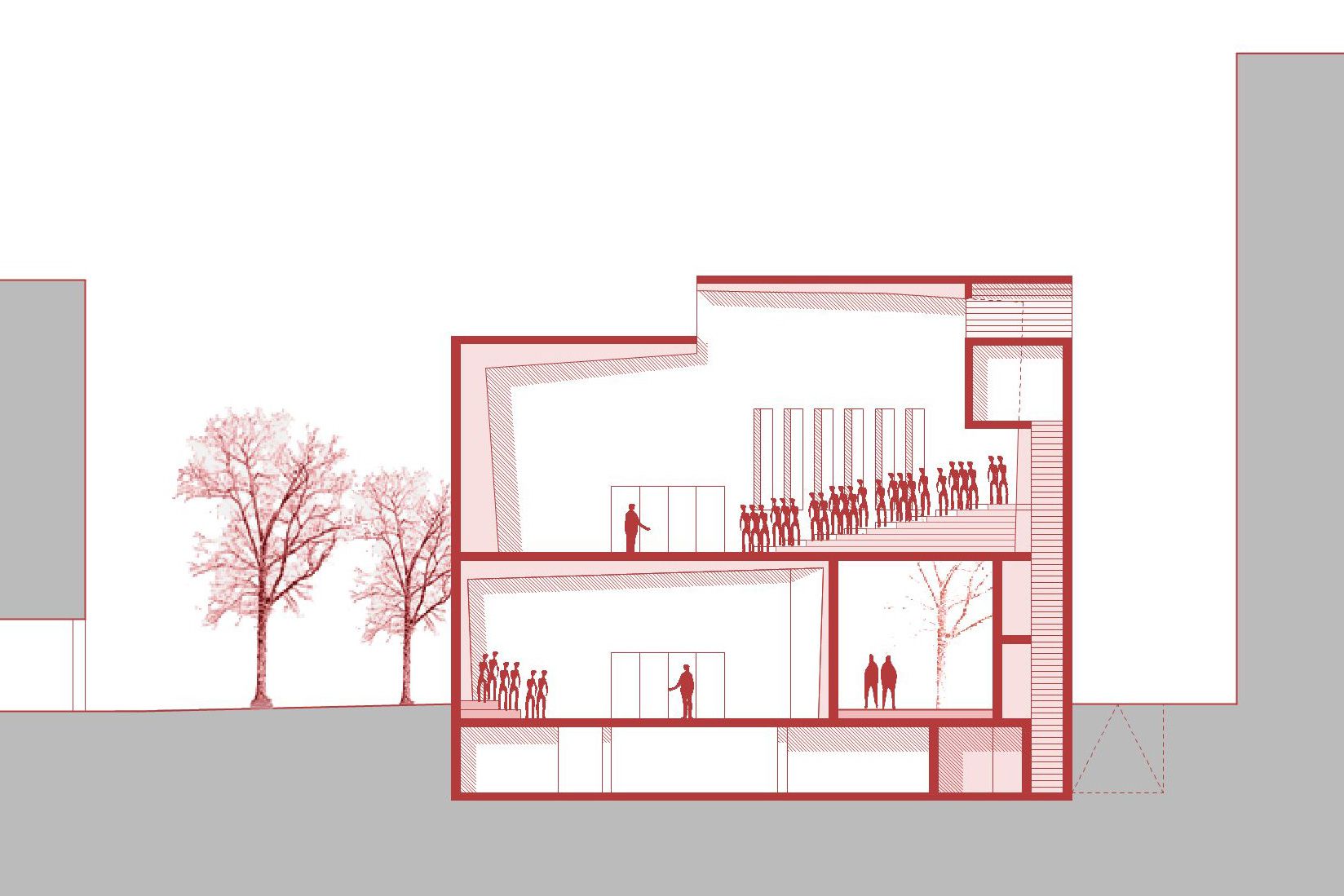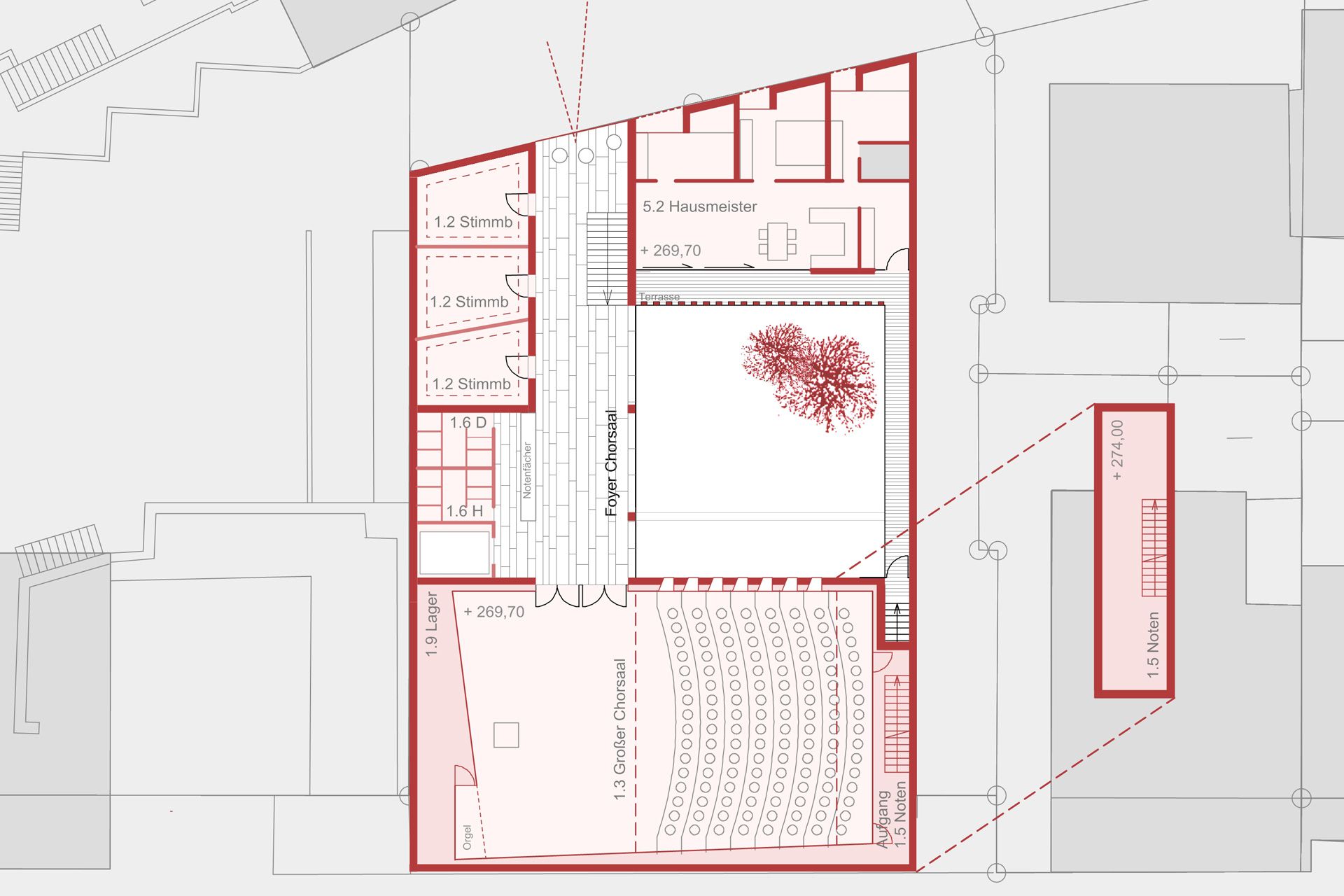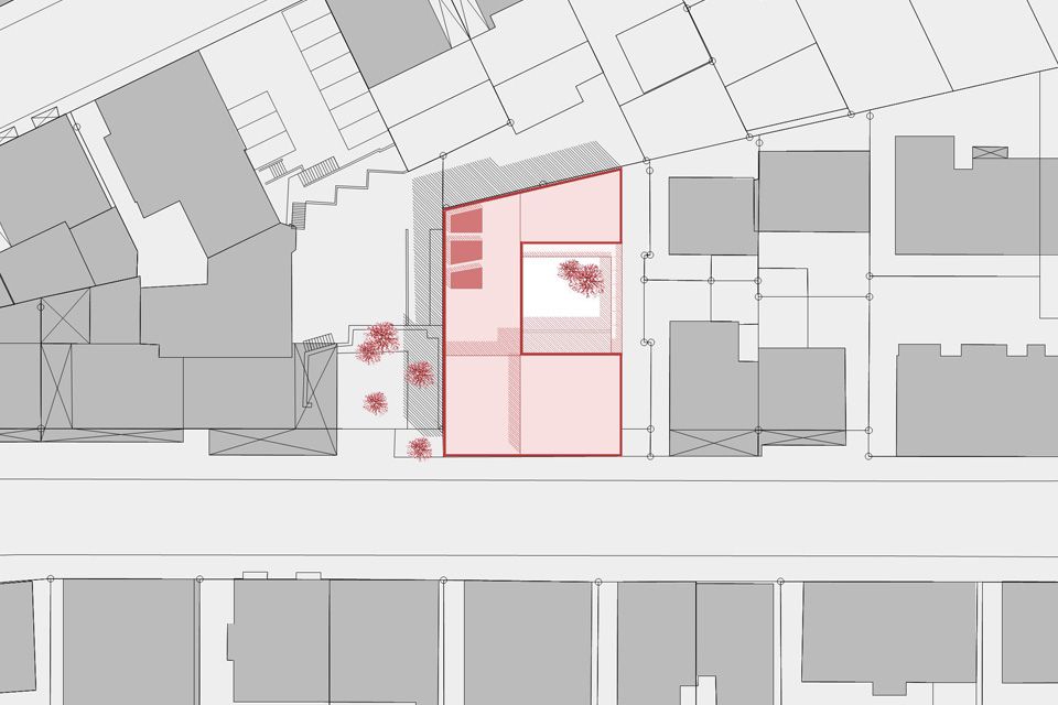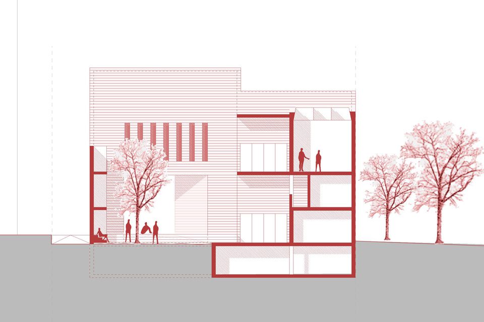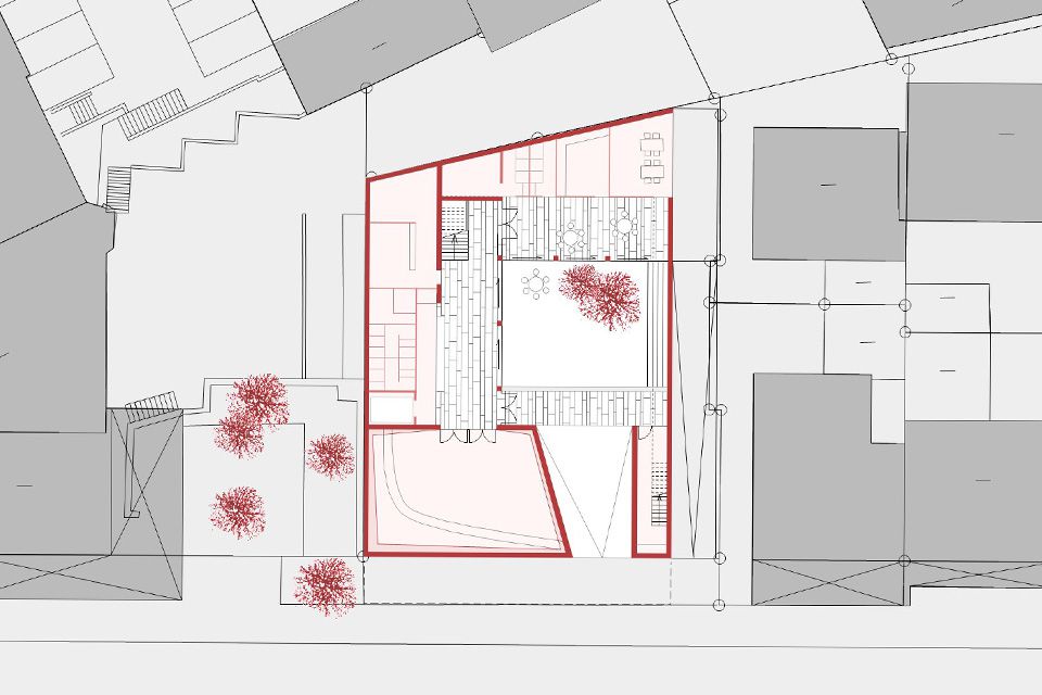 The new building for the St. Eberhard Cathedral Choir School in Stuttgart stands as a striking brick structure in a gap surrounded by Wilhelminian-era houses. Its sculptural independence does justice to the overriding importance of the church as an institution and blends into its surroundings through its materiality and craftsmanship. A passage leads visitors from the street into a tree-lined courtyard. Only here does the entrance become visible. The building, closed to the outside, opens onto the courtyard with its foyer, administration, and apartments. The introverted choir rooms are flooded with natural light via skylights.