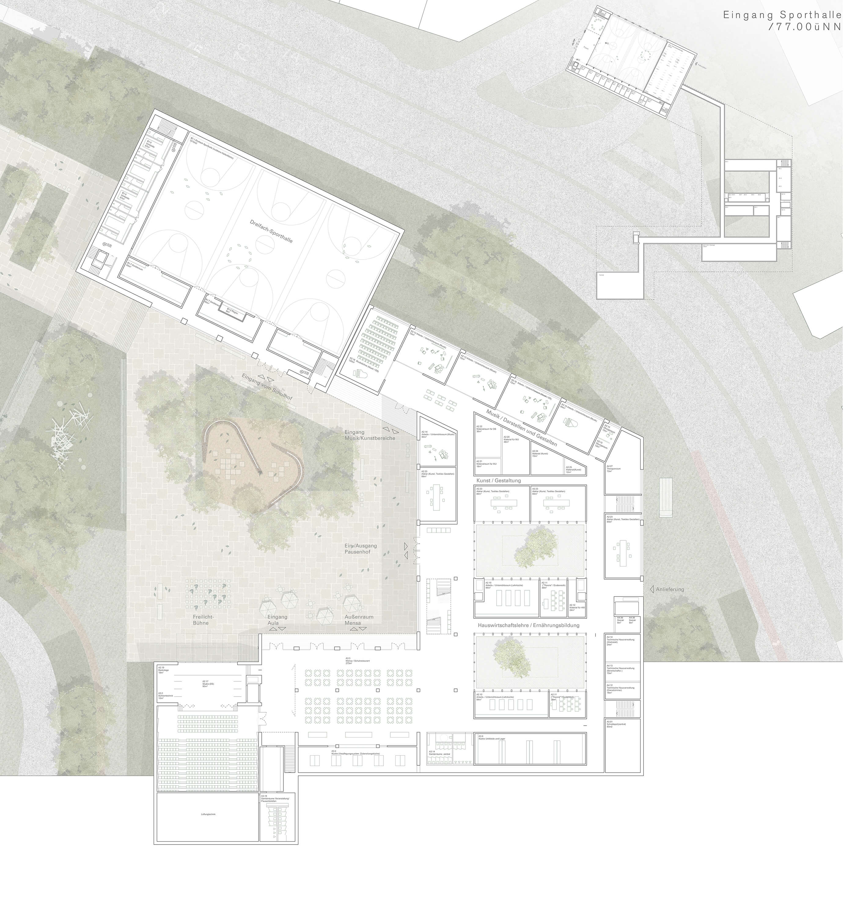 Erdgeschoss mit Schulhof