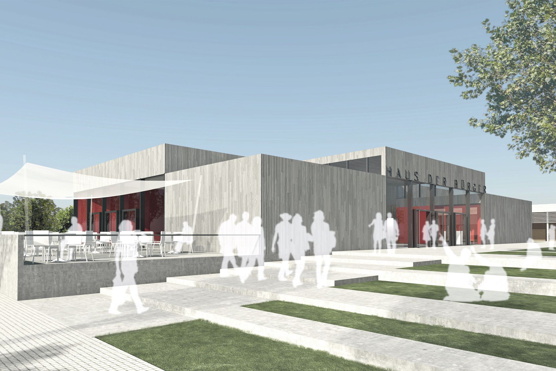 The new construction of the House of Citizens and Clubs represents the first important step in the reorganization of the existing sports park in Pöcking. The three buildings are staggered like windmills on the construction site, which gives the buildings a certain urban autonomy and at the same time allows them to work together spatially. The Haus der Bürger und Vereine, the first building phase, is oriented towards the town center with its entrance and face towards an attractive square in front of it. All above-ground components are built as a timber frame construction with fine vertical board cladding on the outside made of silver-colored glazed larch wood. The chosen glaze anticipates the patination of the wood and thus creates a durable and high-quality appearance. The choice of local timber as a renewable and therefore resource-saving building material plays a central role in the sustainable concept of the design.
