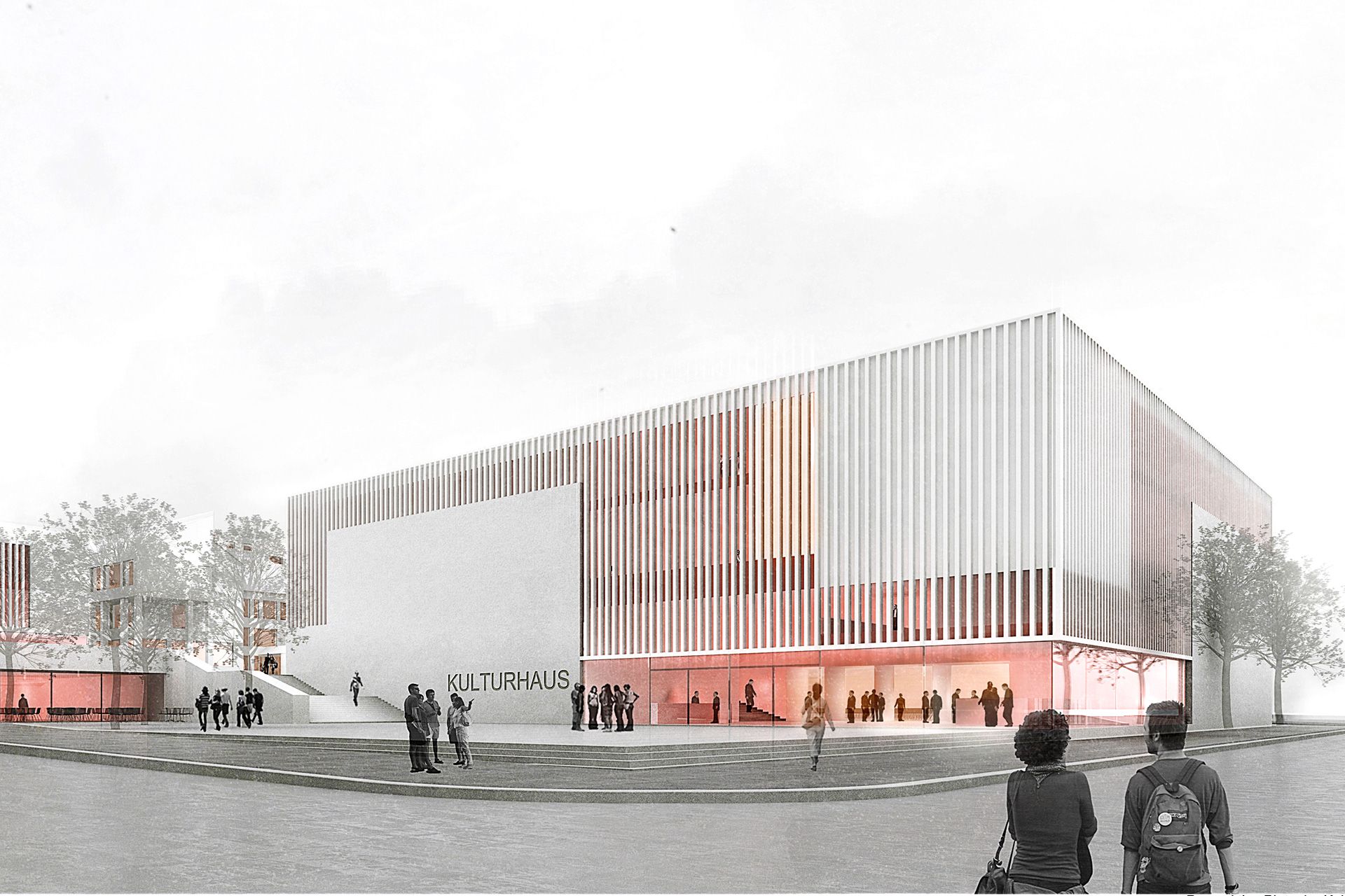Culture house, training center and town hall extension - three simple buildings together with the existing town hall characterize the town center of Ingelheim at the “Neuer Markt”. The buildings are grouped together as solitary structures, creating a sequence of squares staggered according to the topography and giving each building its own outdoor space. The all-round urban composition avoids rear sides and creates a clear hierarchy of spaces. The Kulturhaus, which is square in plan, is accessed directly from Platz der Kultur as the central building block. A generous flight of steps leads up to the higher level of the education building. The Kulturhaus is conceived as a hybrid building, comprising the main large rooms, cultural hall, concert hall, chamber music hall and seminar rooms. These halls occupy the main corners of the building and their differentiated room heights create a rich basic structure for the building. All halls are accessed via a three-dimensional foyer extending through the building with a centrally lit staircase.