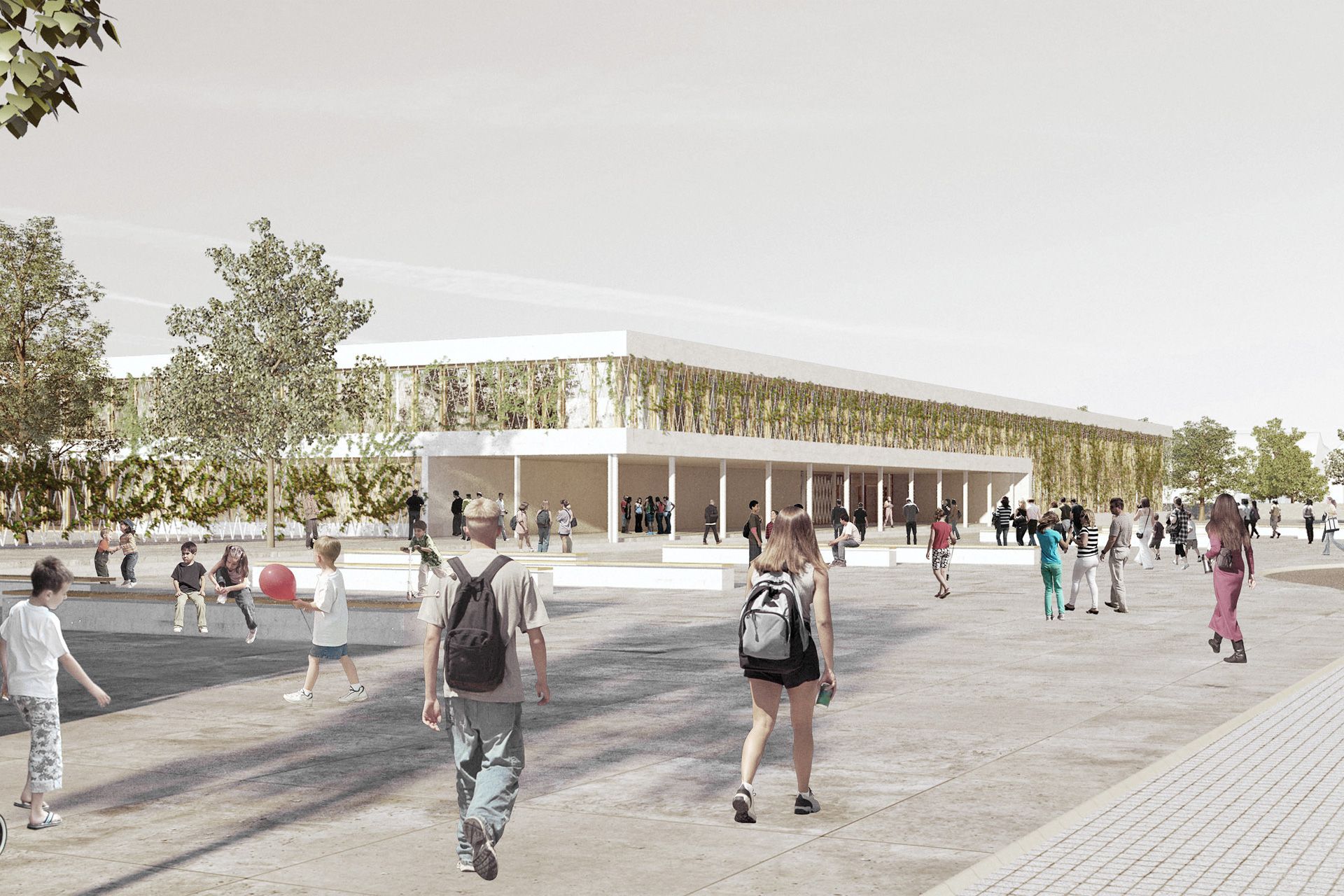 The undefined urban situation is structured by a triad of precisely positioned buildings. The school, kindergarten and commercial building are related architectures that formulate clearly defined open spaces. Together with the kindergarten and the commercial building, an appropriately urban town square is created with an attractive address on the newly created Cincinnatiplatz. The school building responds to the two-sided nature of the site in terms of urban planning by creating two entrances on the north and south sides, which are linked by an internal access axis. This access axis divides the school into an area of serially arranged classrooms on the east side and a geometrically more freely organized communal area on the west side. The two-storey design of the complex greatly simplifies vertical access. The result is a lively place of learning that can become a common home for pupils from a wide range of backgrounds.